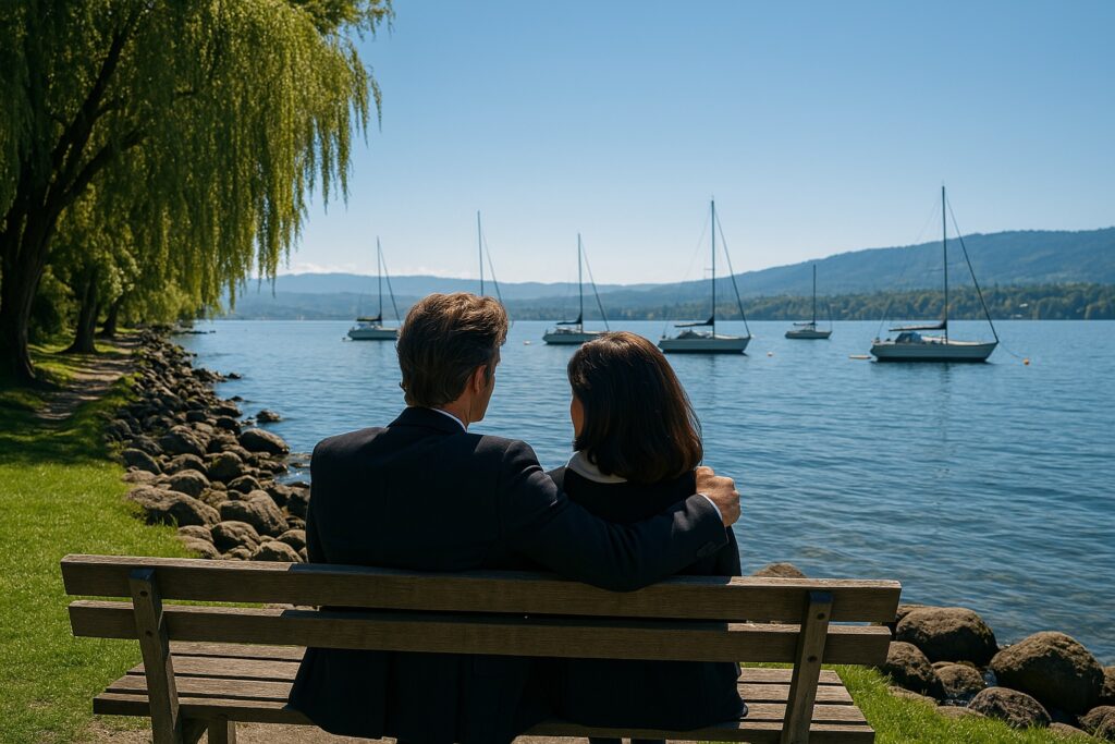 Zwischen den Bäumen finden sie eine Bank. Sie setzen sich. Schauen über das Wasser, spüren die Sonne auf der Haut. Der See. Die Luft. Der Moment. Und sie – ganz bei sich.