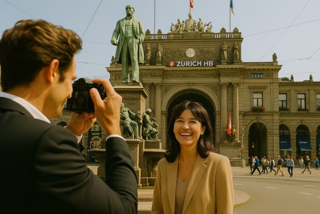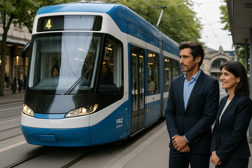 Ben und Martha stehen bereit. Die Sonne scheint, 10 Grad, klarer Himmel über Zürich. Die Straßenbahnlinie 11 fährt direkt vor dem Hotel vorbei – heute mit den eleganten neuen Flexity-Zügen. Sie steigen ein, lassen die Stadt an sich vorbeiziehen. Die Fahrt ist kurz, rund acht Minuten, doch in jeder Kurve liegt Gelassenheit. Ziel: Bürkliplatz.