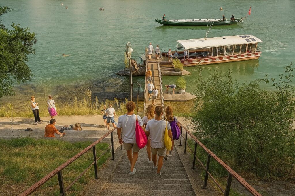 Darin verpackst du deine Sachen und springst in den Rhein, lässt dich treiben.