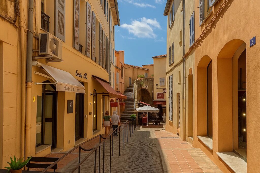 Die Ankunft in Saint-Tropez war ein Schlag aus Licht und Farbe. Der Hafen glitzerte, Yachten schaukelten, Stimmen füllten die Luft. Doch Jessica führte sie in eine schmale Gasse. Hier war es kühler, die Häuser alt, mit verblassten Fassaden und grünen Fensterläden. Wäsche flatterte im Wind, der Duft von Salz und gekochtem Gemüse mischte sich mit dem Geräusch von Schritten.