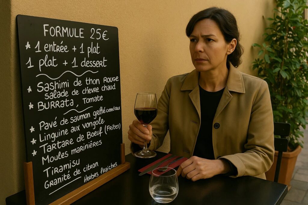 „Plat du jour,“ verkündete er. „Frische Dorade, Ratatouille, ein Pastis dazu.“