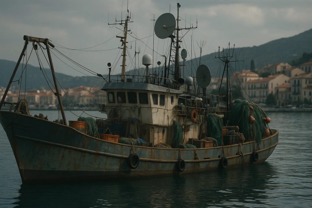 Ein Schatten fiel über den Tisch. Neben dem Wirt trat ein Mann, kräftig gebaut, mit hochgekrempelten Ärmeln, das Gesicht salzgegerbt. Seine Bewegungen hatten die Ruhe eines Seefahrers.