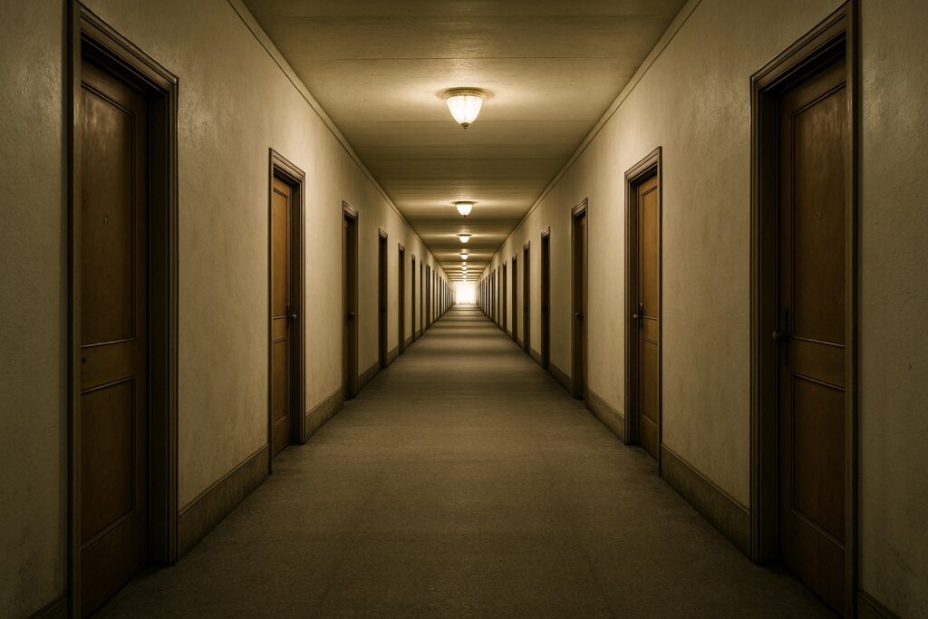 Ein Gesetz existiert hier: So wie ich einen Raum betrete, verlasse ich ihn. Drehe ich mich um, ist die Tür verschlossen. Dann gibt es kein Zurück. Dann bin ich gefangen – nicht durch Gitter, nicht durch Mauern, sondern durch Zeit. Die Zeit wird zur Realität, und die Realität wird zum Käfig. Kein Recht schützt mich. Kein Zeuge steht bereit. Nur ich. Und das Gewicht dessen, was ich erkenne.