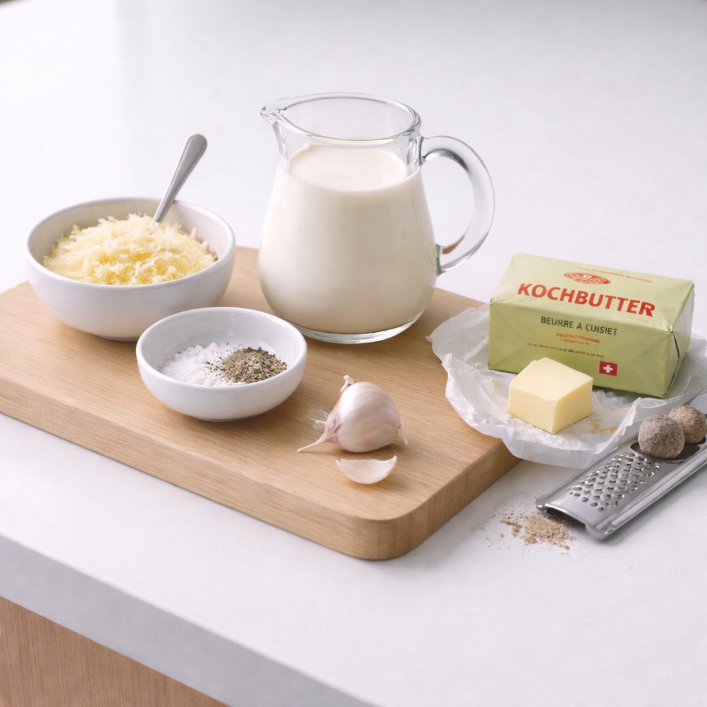 - 60–80 g Käse (Gruyère oder Emmentaler)